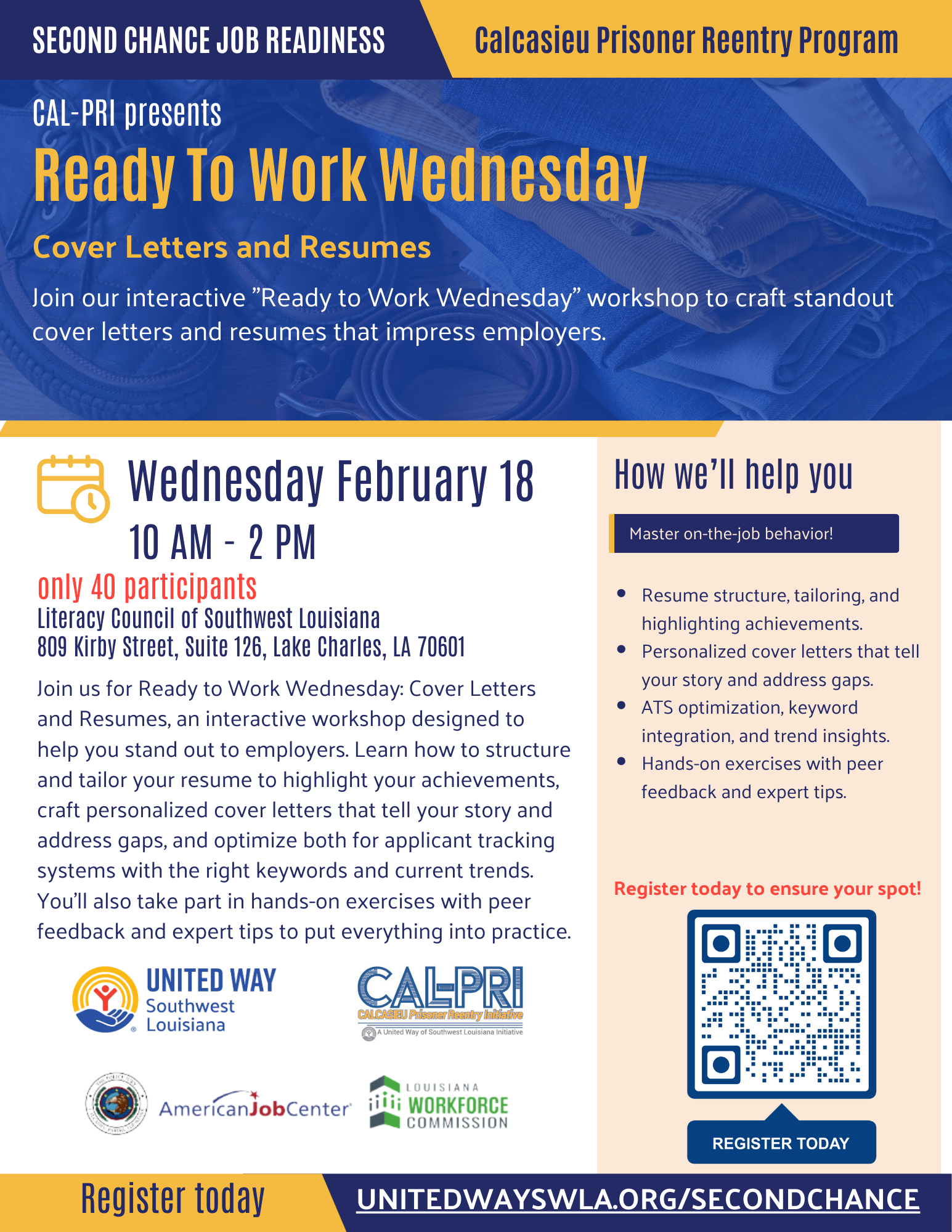 Join us for Ready to Work Wednesday: Cover Letters and Resumes, an interactive workshop designed to help you stand out to employers. Learn how to structure and tailor your resume to highlight your achievements, craft personalized cover letters that tell your story and address gaps, and optimize both for applicant tracking systems with the right keywords and current trends. You’ll also take part in hands-on exercises with peer feedback and expert tips to put everything into practice.