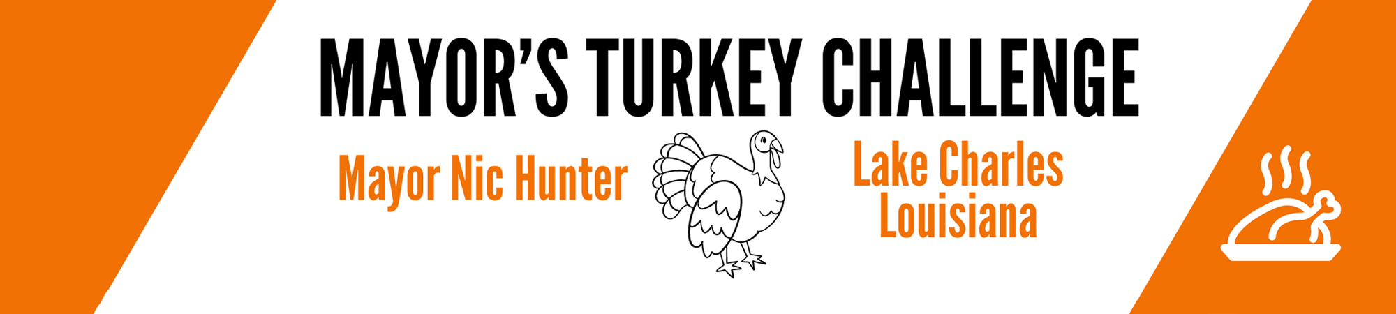 City of Lake Charles Mayor Nic Hunter is issuing a challenge to local grocery stores, food distribution companies, casinos and other businesses or individuals to each sponsor ten families ($250) for the 2024 holiday season. This will ensure a frozen turkey for each family as part of his Mayor's Turkey Challenge.